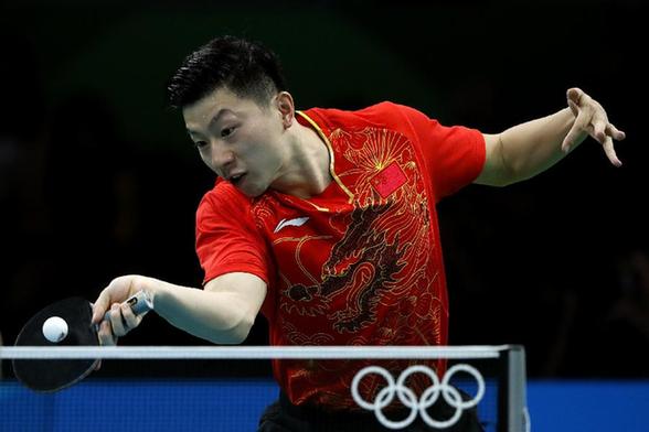 8月8日,中国选手马龙在比赛中。当日,在2016里约奥运会乒乓球男子单打第四轮比赛中,中国选手马龙以4比2战胜韩国选手郑荣植,晋级男单八强。 新华社记者沈伯韩摄